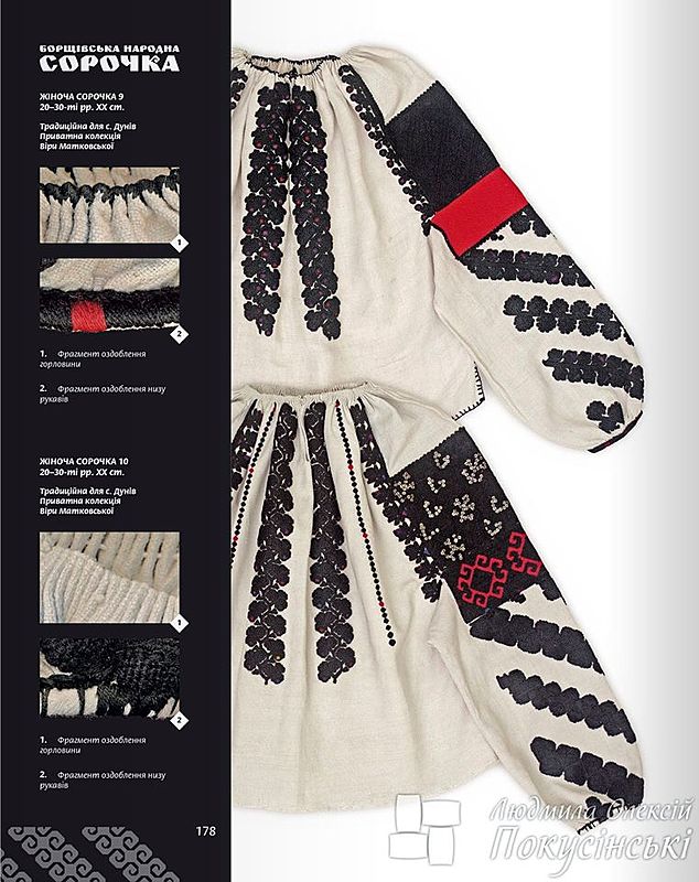 Текст і фото з фейсбук сторінки Лидмили і Олексія Покусінських авторів книг: "Борщівська народна сорочка: експедиційні матеріали та приватні колекції" та "Борщівська народна сорочка: матеріали, крій, техніки шитва". Книги ви можете придбати звернувшись до авторів напряму.