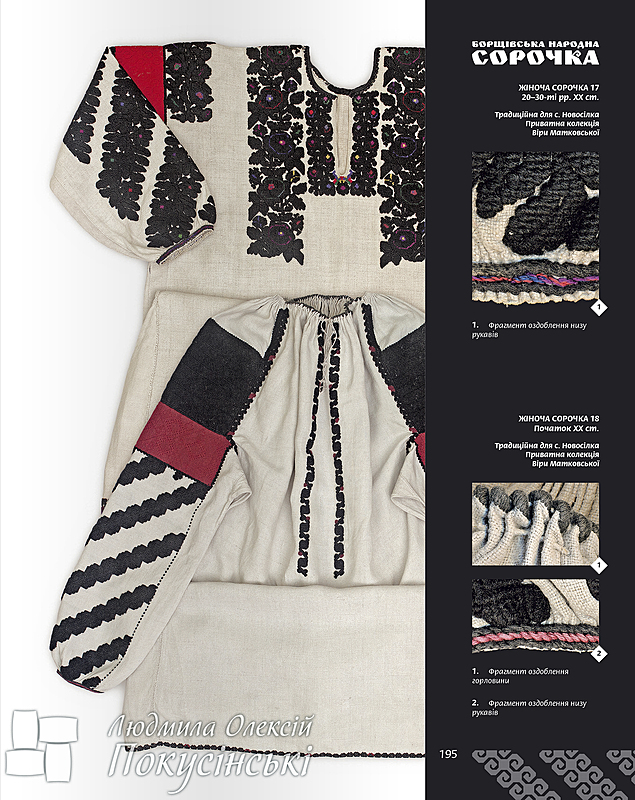 Фото і схеми вишивки з книги "Борщівська народна сорочка: експедиційні матеріали та приватні колекції" 576 ст. яку ви можете придбати напряму у авторів через офіційну сторінку фейсбук Людмила Олексій Покусинські