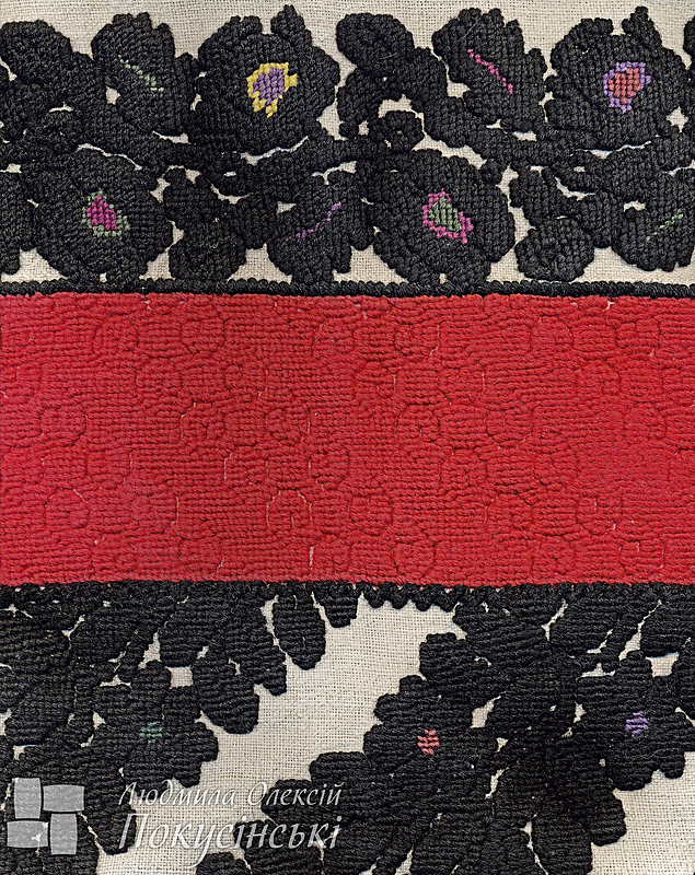 Червоним кольором вишито кафасор, жіноча сорочка с. Новосілка, посчаток ХХст.